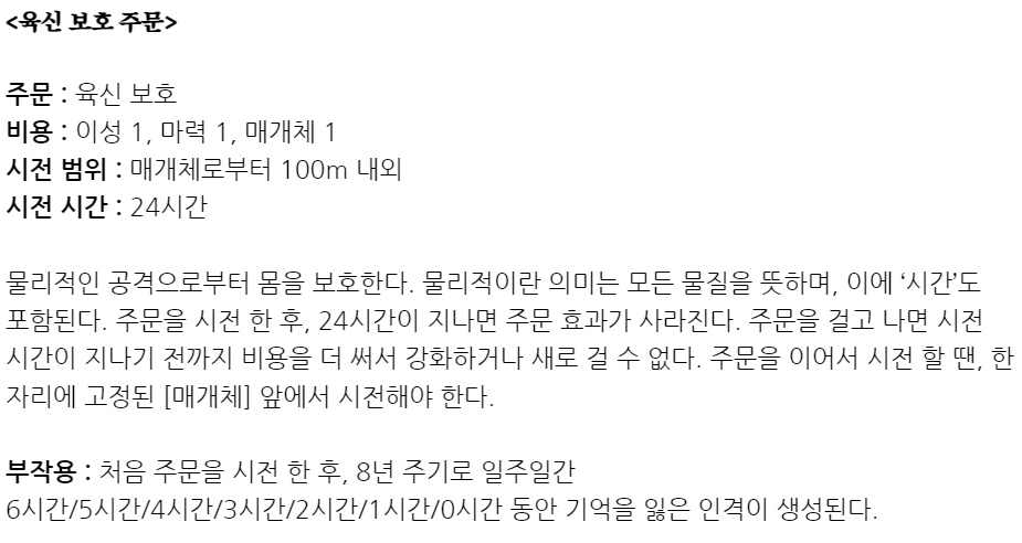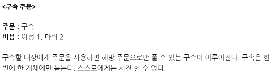 "구속 주문을 사용하면 네 인격을 몸에 묶어둘 수 있어."